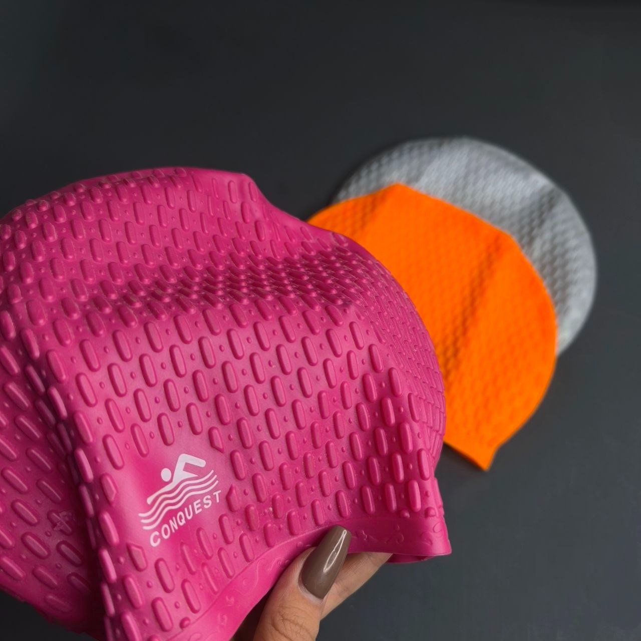 کلاه شنا CONQUEST ، یک ابزار ضروری برای هر شناگر است که به دنبال راحتی و عملکرد بالا در هنگام شنا کردن است. این کلاه با طراحی خاص و جنس سیلیکونی با کیفیت عالی، به شما این امکان را میدهد که تمام تمرکز خود را بر روی تکنیک شنا و لذت از آب بگذارید. با این کلاه، دیگر نگران خیس شدن موهای خود نخواهید بود، چرا که به خوبی تمام موها را پوشش میدهد و از ورود آب به زیر کلاه جلوگیری میکند.