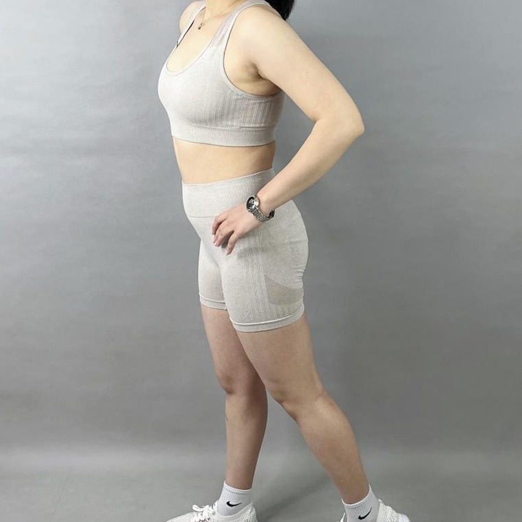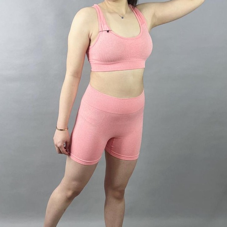 ست نیم تنه و شورتک سیملس به‌خصوص برای فعالیت‌هایی نظیر بدنسازی طراحی شده است. با توجه به تکنولوژی سیملس به کار رفته در این محصول، دیگر نگران حساسیت یا خستگی ناشی از درزهای معمولی لباس نباشید. این طراحی خاص، علاوه بر زیبایی، احساس راحتی و آزادی را در هنگام تمرین فراهم می‌کند و به شما کمک می‌کند که تمام تمرکزتان را بر روی تمرینات خود بگذارید.