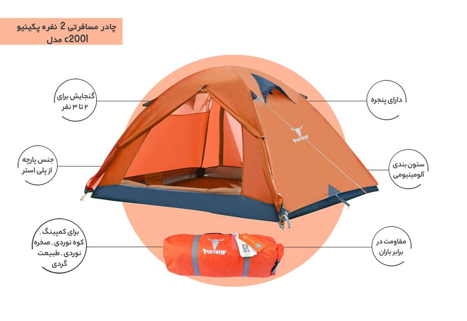 چادر کوهنوردی پکینیو مدل PKN-C2001، همسفر ایدهآل شما در سفرهای کمپینگ و کوهنوردی است. با این چادر، تجربهای فراموشنشدنی از شبنشینی در دل طبیعت، دور از هیاهوی روزمره و در آغوش آرامش به شما هدیه میدهد. اگر به دنبال یک چادر با کیفیت، کارآمد و راحت هستید، مدل PKN-C2001 انتخابی بینظیر خواهد بود.